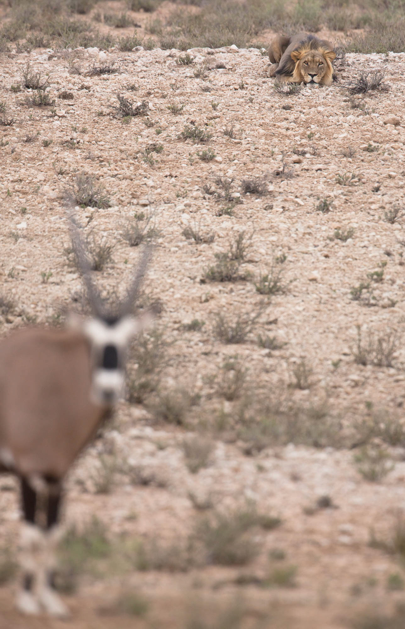 Lion couple (panthera leo) in Kgalagadi Transfrontier Park