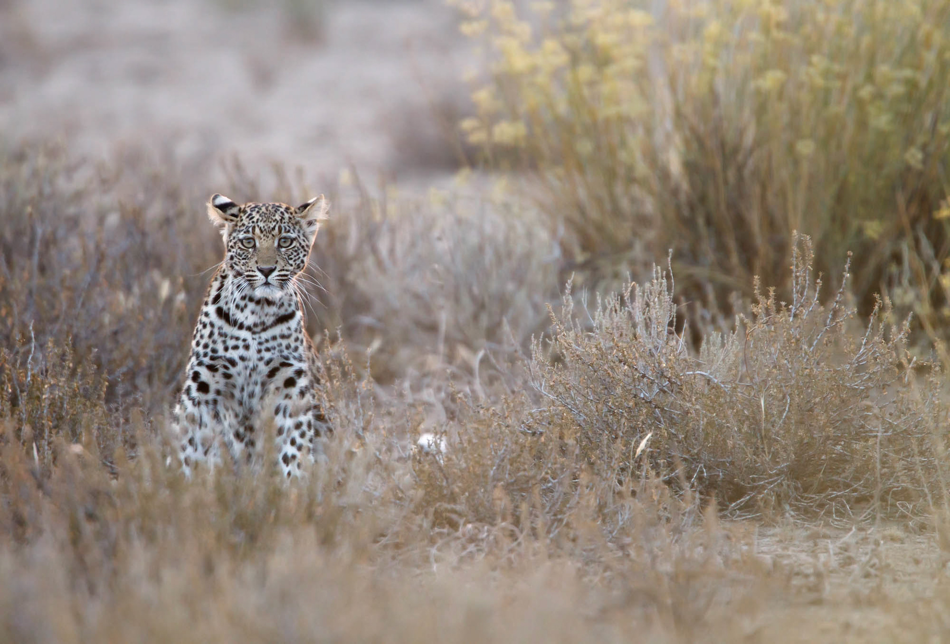 A young leopard (panthera pardus) in Kgalagadi Transfrontier Park