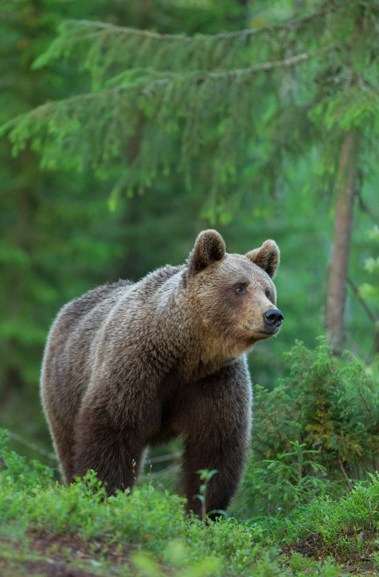 European Brown bears (Ursus arctos) fighting in cottongrass